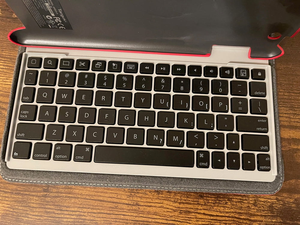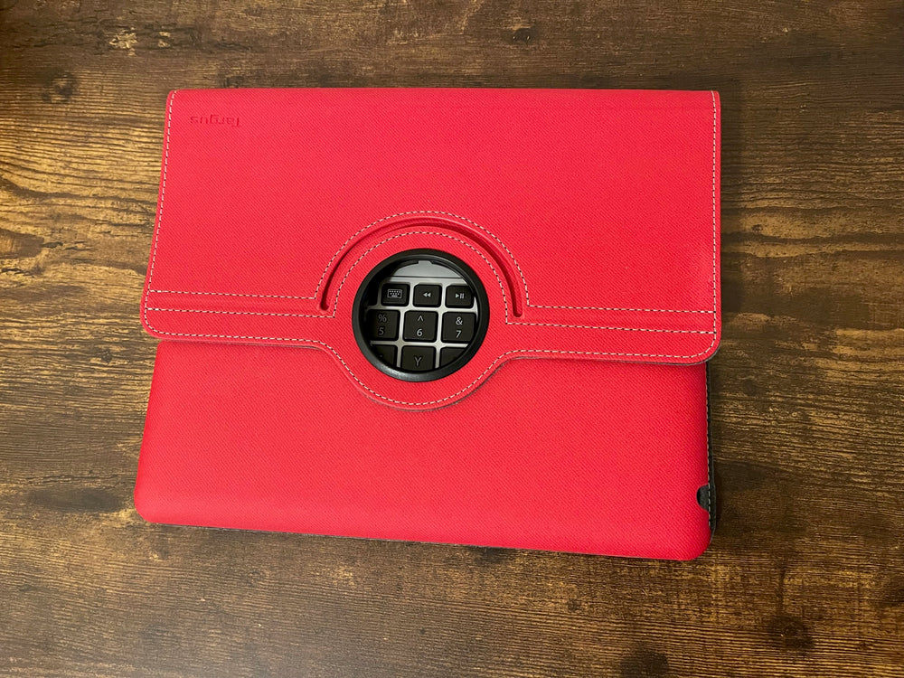 This Red protective case doubles as a rotating stand and includes a Bluetooth keyboard that stores inside. The water-resistant exterior and soft interior keep your iPad safe while letting you work or watch in both portrait and landscape modes.