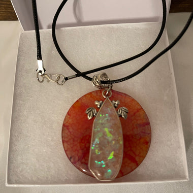 Handmade Dragon Veins Pendant with Opal stone, Leather Cord Necklace, 14 inches