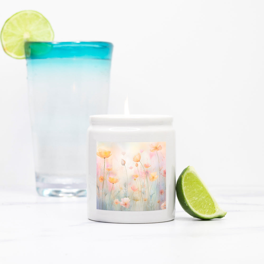 Spring Blooms Coconut Soy Wax Ceramic Candle (8oz - White)