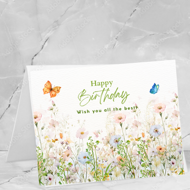 Watercolor Pastel Flowers - Inspirational Birthday Card