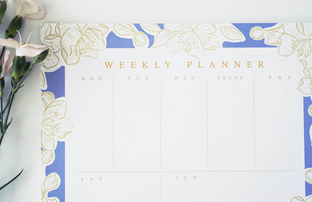 Blue Floral Weekly Planner Notepad