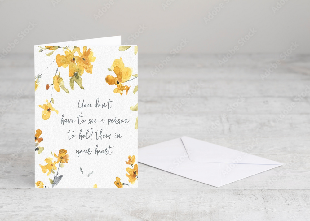 Send warm wishes with our Choose to Be Happy Thinking of You Card. This card, with its lovely floral pattern and vibrant yellow flowers, will brighten anyone's day. The motivating saying urges you to cherish your loved ones and maintain meaningful relationships. Perfect for letting someone special know you're thinking about them.