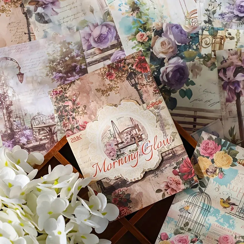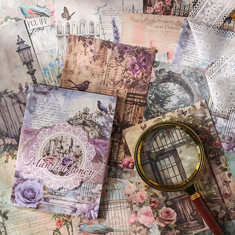 50-sheets (6pcs) set Vintage Floral Butterfly Pattern Non-Adhesive Paper for scrapbooking, crafts, journaling