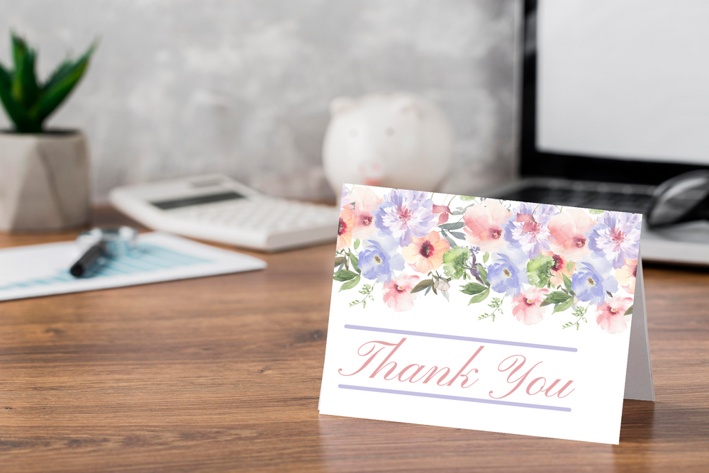 For the ideal way to thank someone, use this Purple Bouquet Bliss Thank You Card. It's certain to make an impact because of its sophisticated style and meaningful message. A gorgeous arrangement of pink, blue, and purple flowers creates a lovely and balanced color combination on the card. It's visually striking with the vivid flowers on a calming purple background. The word "Thank" is accompanied by a heart icon, which highlights the feeling of gratitude. This gorgeous card not only looks great, but it also sends a sincere word of appreciation. For that reason, our Purple Bouquet Bliss Thank You Card is the ideal option if you're searching for a unique approach to express your gratitude.