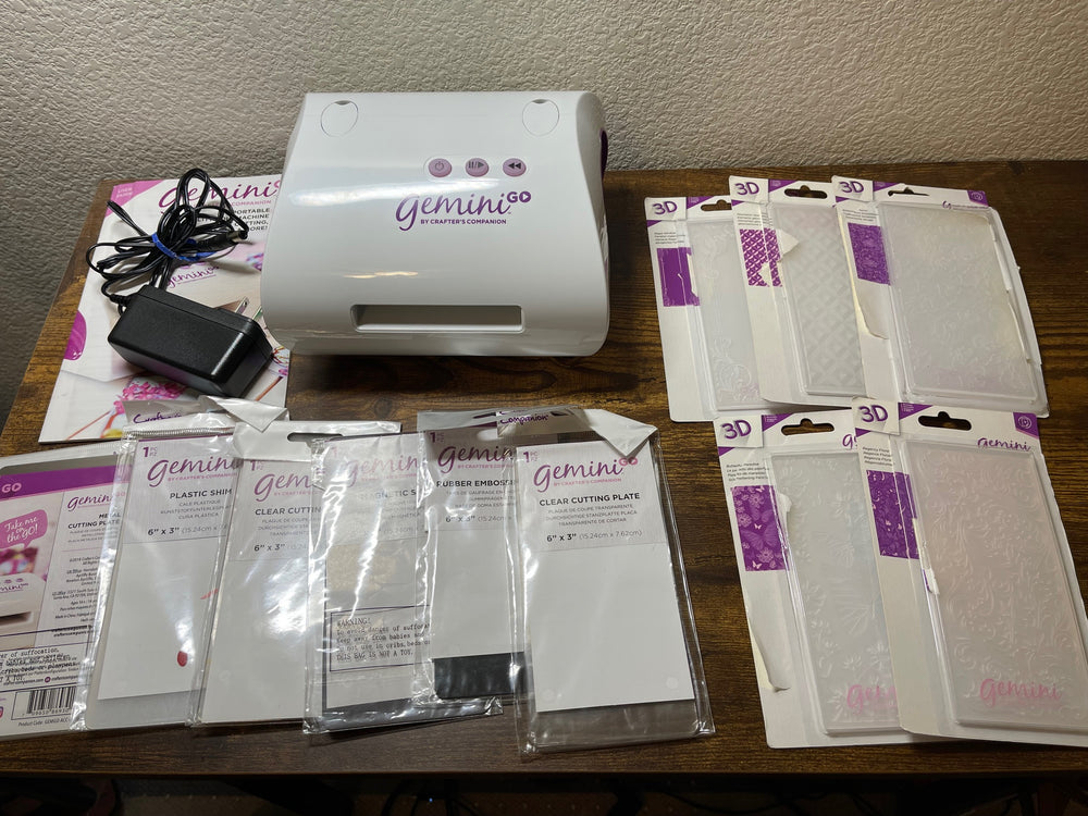 The Gemini Go Die Cutting and Embossing Machine packs the same precision and power as the larger Gemini machines, but in a compact, portable size. With a 3" x 6" platform, it's perfect for your smaller crafting project, easy to take anywhere, but tough enough for every detail. Gemini by Crafter's Companion is your home base for all things die-cutting, embossing, and foiling. Whether you’re obsessed with our cult-favorite machines, curious about patented Double-Sided Dies, or ready to try the coveted Foil press and multimedia dies, it's perfect for card makers and crafters. This Gemini Go machine has been used only a few times and is in perfect condition. The accessories list below includes some that are new (just open package), others have been used 1-2 times, and are in great condition.