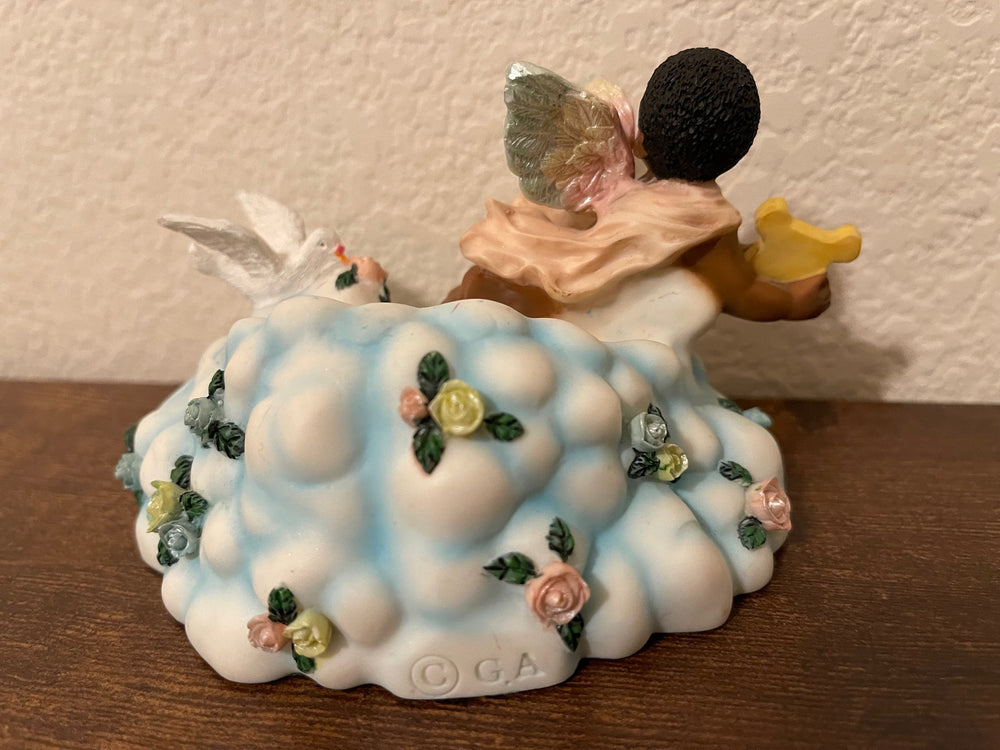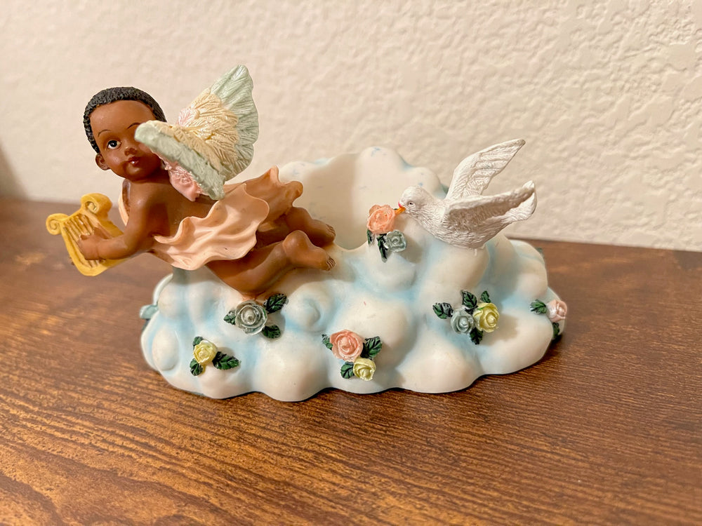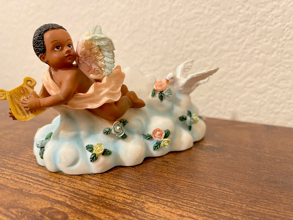 Vintage African American Boy Angel with Harp Figurine