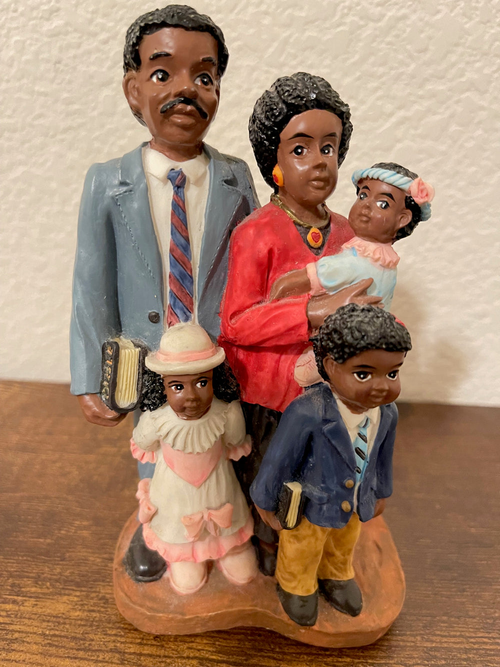 Young’s vintage collectible hand-painted figurine depicts an African American family going to church. Pre-owed Resin collectible that is in excellent condition.